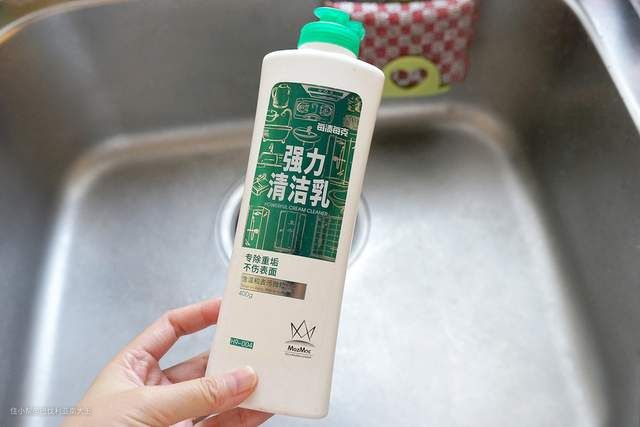 它是乳液质地,里面加入了研磨颗粒和去污表活,擦拭时会处理的更细腻干净,更不伤物体表面。我一般在清理厨房电器表面的油污时,会首选它,更温和。