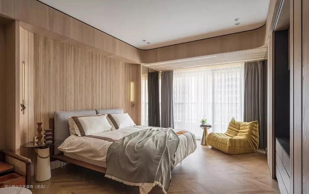 卧室内的家具主要为床和衣柜。虽说家具数量不多,但体积可都不小。如果尺寸不合适会显得卧室更加拥挤,住起来也不舒适。
