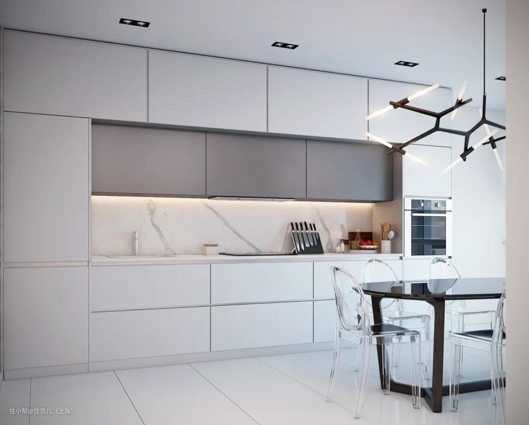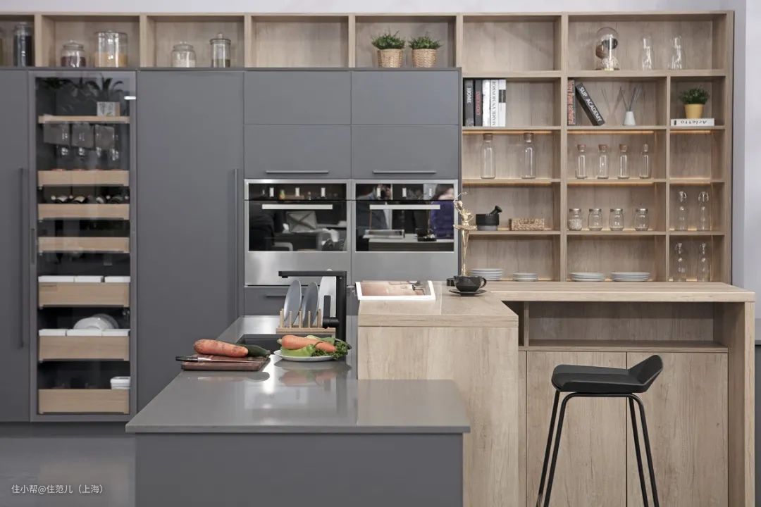 也可以混搭 ,比如纯色和仿木纹做“套色”,很考验橱柜品牌设计师的功力,但是搭配好了很漂亮。