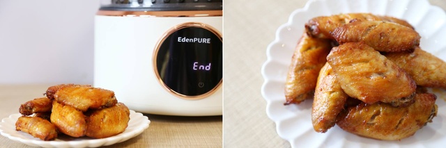 这里就不得不说一个空气炸锅的优势了,烤箱如果不想烤盘洗的太费劲,铺锡纸肯定是少不了的,中途翻面的时候就总会把鸡皮翻的不完整。宜盾普空气炸锅的不粘涂层炸篮一来完全不会粘,二来加上3D热风也能让腔体内部加热非常均匀,半个小时就收获一锅两面焦黄色泽诱人卖相一流的烤鸡翅~