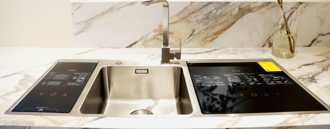 这套方太E6水槽式洗碗机将果蔬清洗、厨房水槽、7套洗碗机结合到了一起,提升台面利用率的同时有提升了厨房整体颜值。