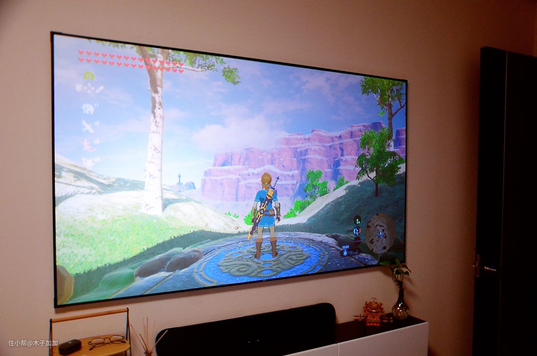就拿我自己家来说,客厅放的是电视,卧室放的是投影,晚上回家看个电影追个综艺、打个游戏还是很嗨皮的。
