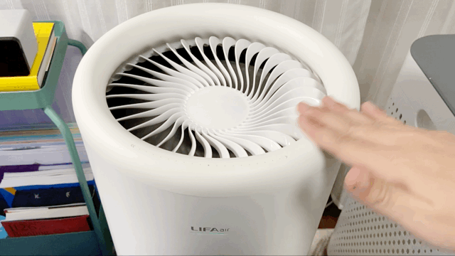 这款空气净化器的白色圆柱造型颜值很高,同时风力具有112档无级变速,可以通过触控方式进行无极调节。