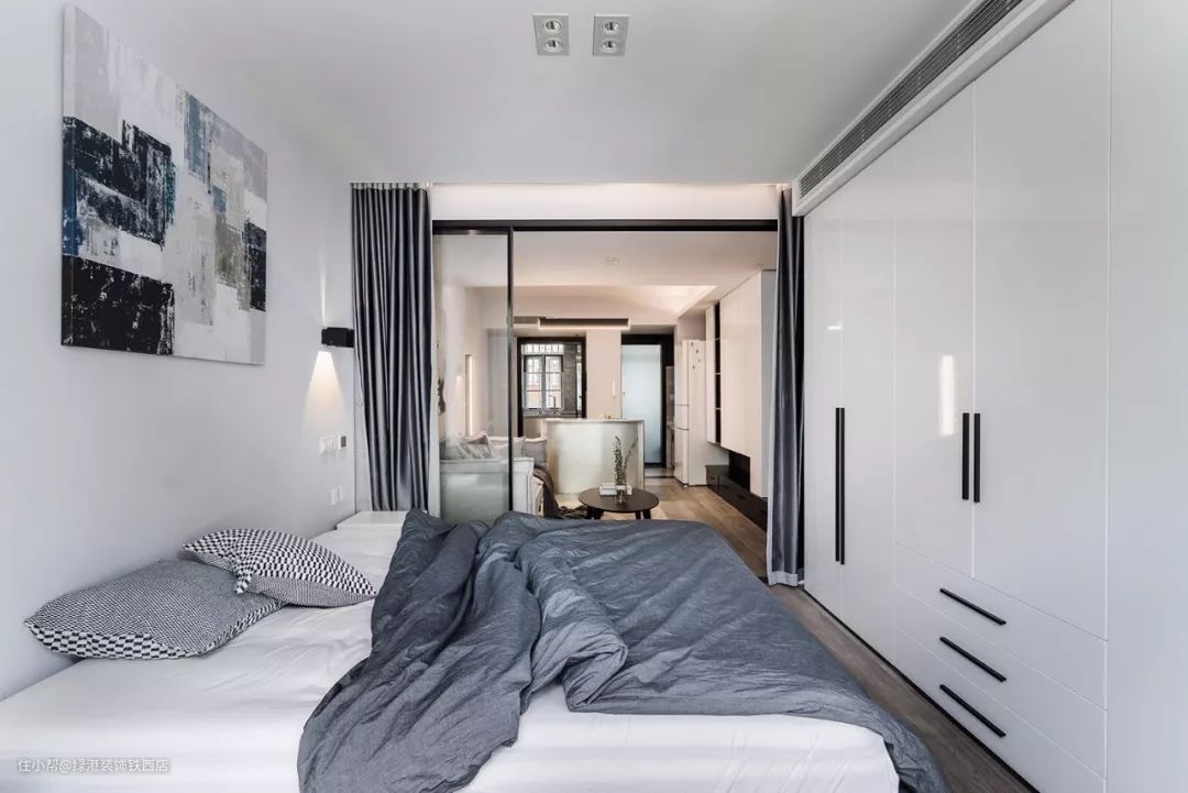 今天要分享的是一套50㎡小户型公寓装修案例,典型的长条形一室一厅,设计师以现代简约风设计,通过简洁的软硬装搭配多光源的设计,来打造出这样一个简约而又有格调的小家。