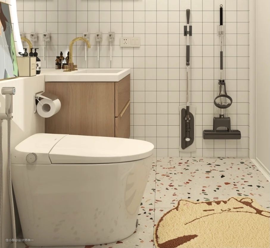 如果家中有老人,马桶旁安装一个扶手是很有必要的,建议扶手的高度在70cm为最佳。