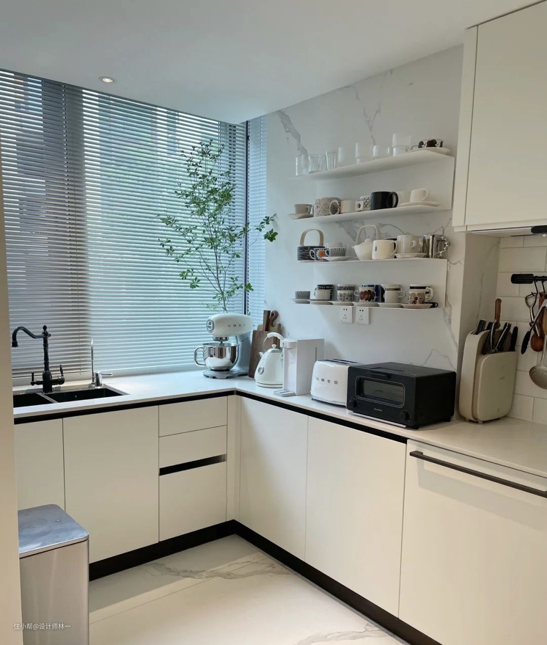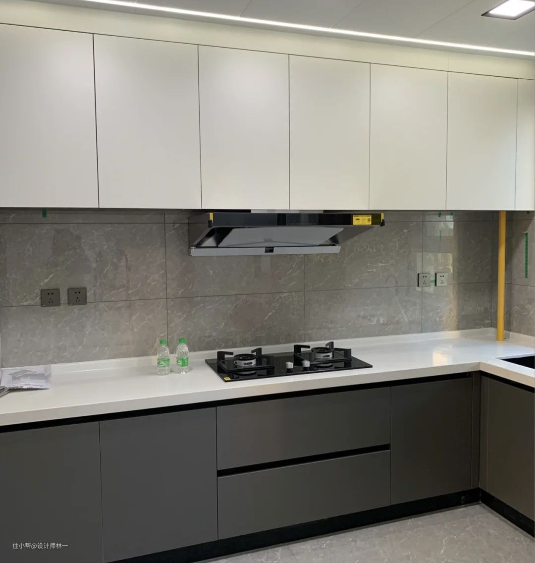 吊柜地柜之间的间距60-70(cm)为最佳(推荐60cm低一点更加方便)。