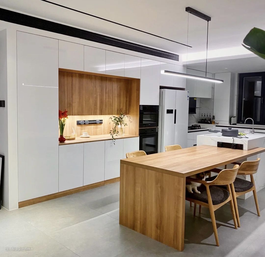 可以选择定制餐边柜,最佳深度40-60(cm),高度根据需求和生活习惯,80cm—做到顶。