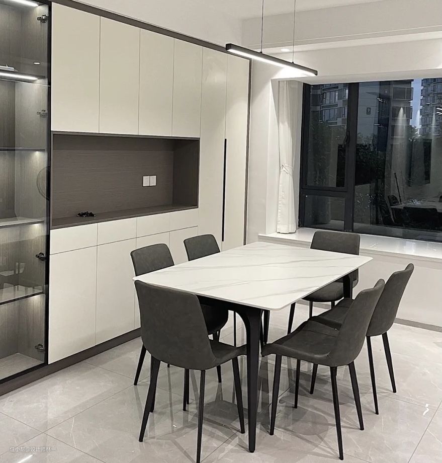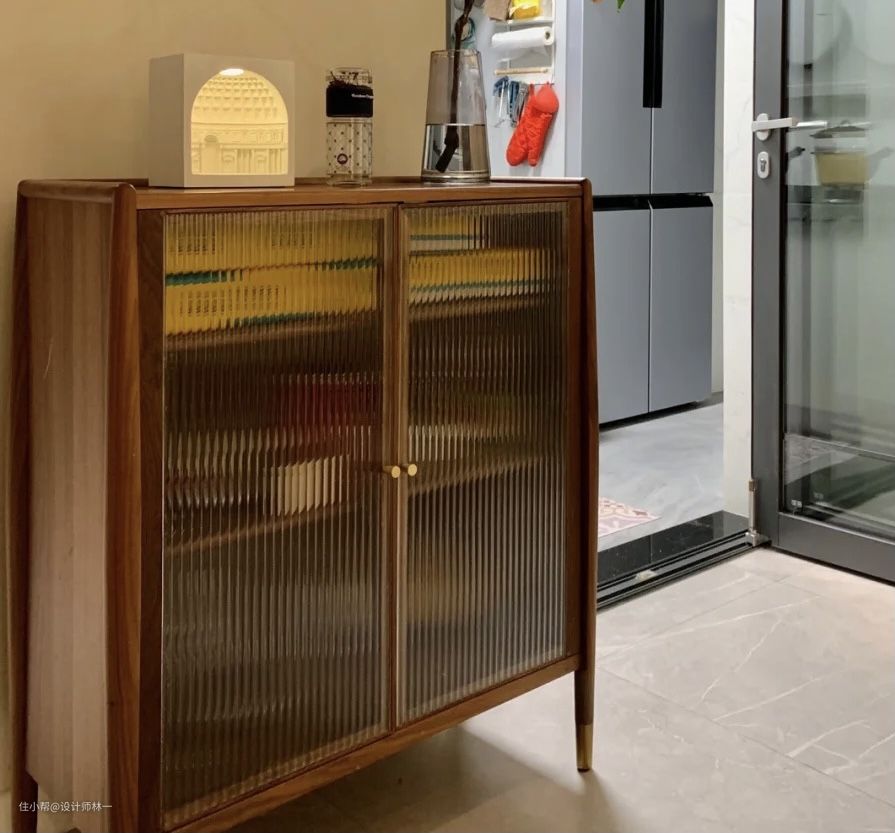 也可以选择成品餐边柜,更加灵活:8㎡的餐厅,长95cm,宽43cm,高200cm的餐边柜最为合适;10㎡的餐厅,长120cm,宽44cm,高90cm的餐边柜最为合适。