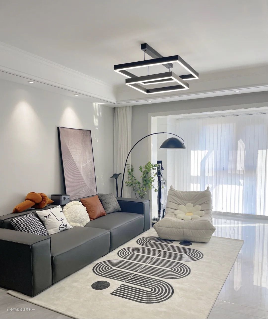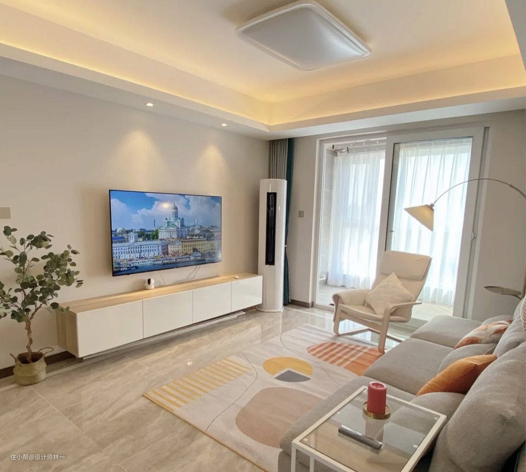 客厅作为全屋使用时间最多的区域,也是休闲、待客、玩耍为一体的空间,不管是家具的尺寸还是摆放的位置一定要符合人体工程学。