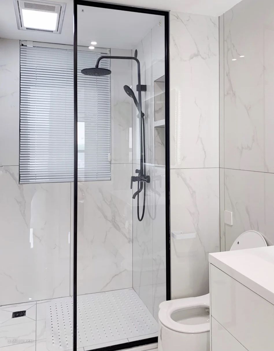 淋浴区的宽度≥80cm,长≥100cm为最佳,淋浴器高230cm最佳,花洒高180-200cm最佳,冷热水开关高90-100(cm)最佳,