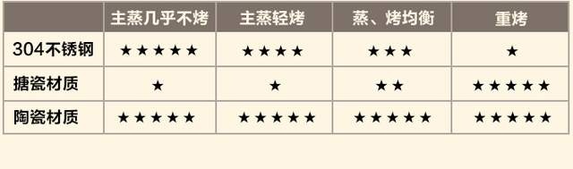其中不锈钢的更耐用,搪瓷耐腐蚀,清洁相对方便,陶瓷则是油污不沾,一擦即净,耐磨耐氧化,体验感最好。大家根据自己最常使用的功能来选择。