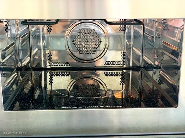 上下发热管+风扇的配置,另一个好处就是拥有空气炸功能了。在上下发热管升温发热时,风扇开启的状态下,此时就可以实现“空气炸”的功能;当风扇关闭,上下发热管加热作用于食物,实现“烤箱”功能。