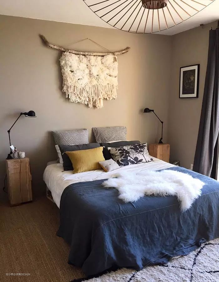 这种装饰的好地方是床上方的墙壁,可以轻松获得一个舒适的睡眠场所,让人轻松忘记压力。