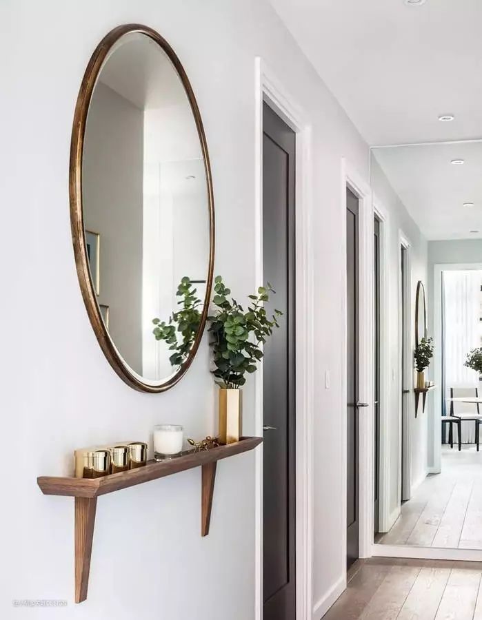 为了节省走廊的空间,可以用狭窄的架子替换置物柜,方便收纳钥匙,放置小雕像,蜡烛,花瓶和喜欢的小东西。