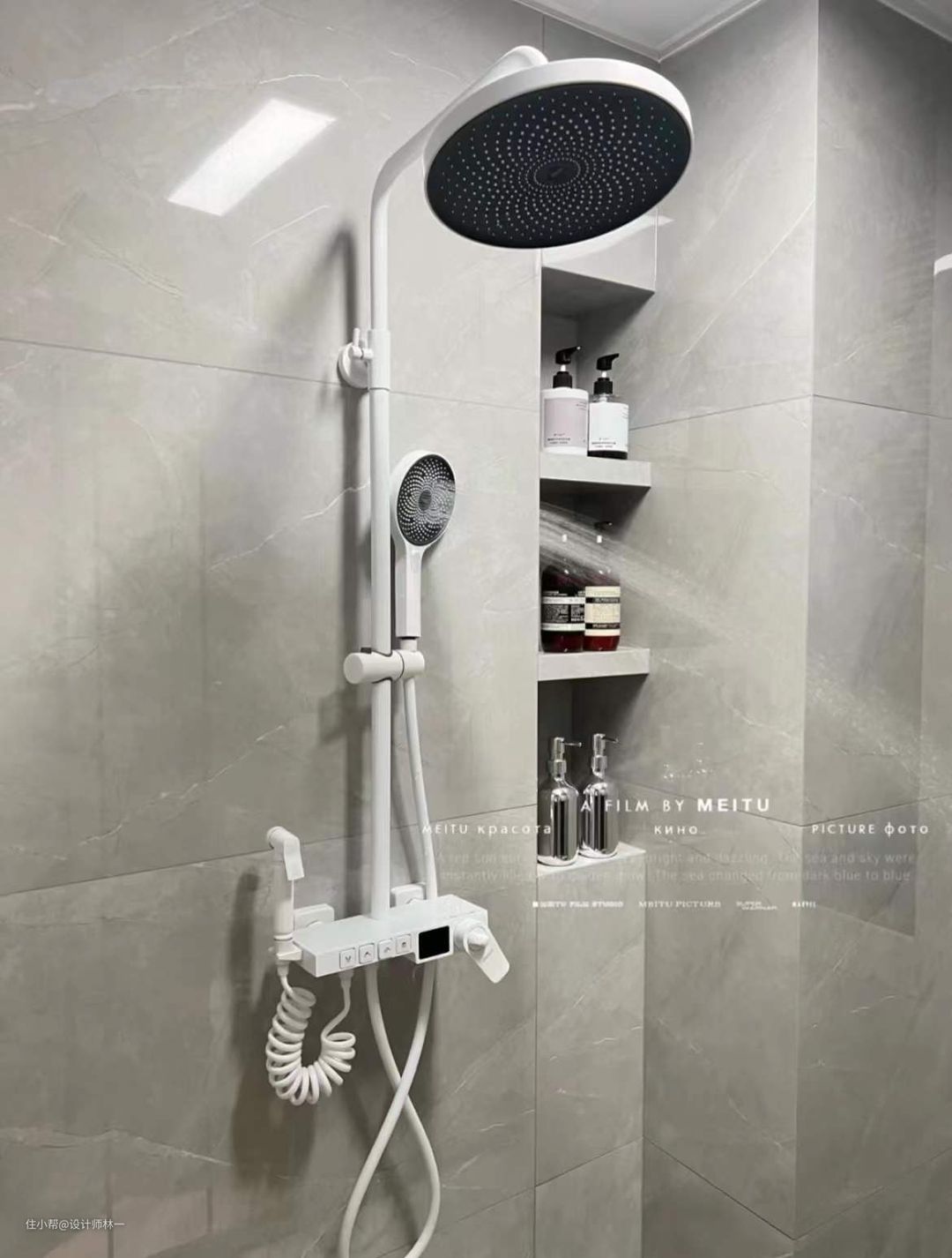 淋浴区做了壁龛,洗浴用品有了容身之处,又省去了收纳用具,白白多出一块空间,沐浴时随手拿也很方便。