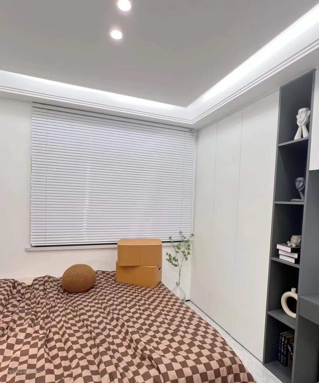 窗户处使用了百叶窗帘,百叶窗帘可通过拉绳的控制完全收起或者放下,显得窗户简约大方,营造了明亮又私密的居家环境。