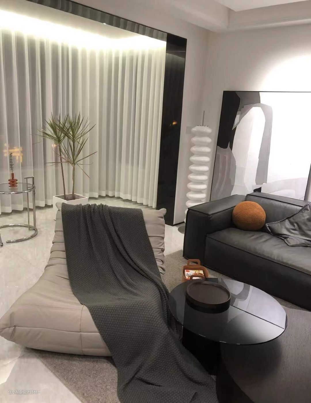 一旁搭配了毛毛虫沙发,慵懒贴肤,全泡棉,没有棱角和过多造型的形态,多条褶皱构成的慵懒光是看到就让人非常放松,一杯咖啡一部电影,都是非常的惬意自在的感觉。