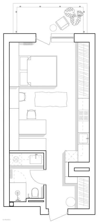 卧室外面有开放式阳台,弥补了缺少休闲区的缺陷。