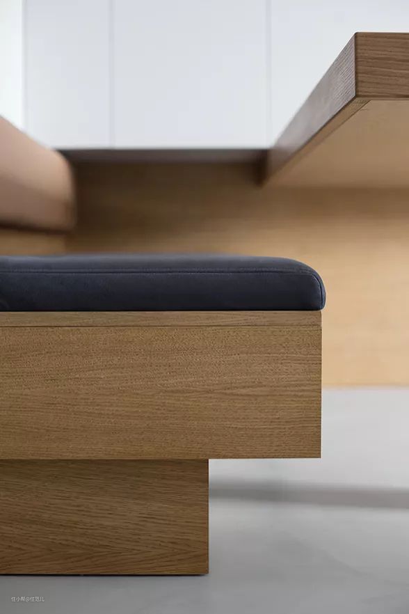 睡眠空间和餐厨区没有明确界限,只用一张颜色稍显跳跃的地毯,做软分隔。
