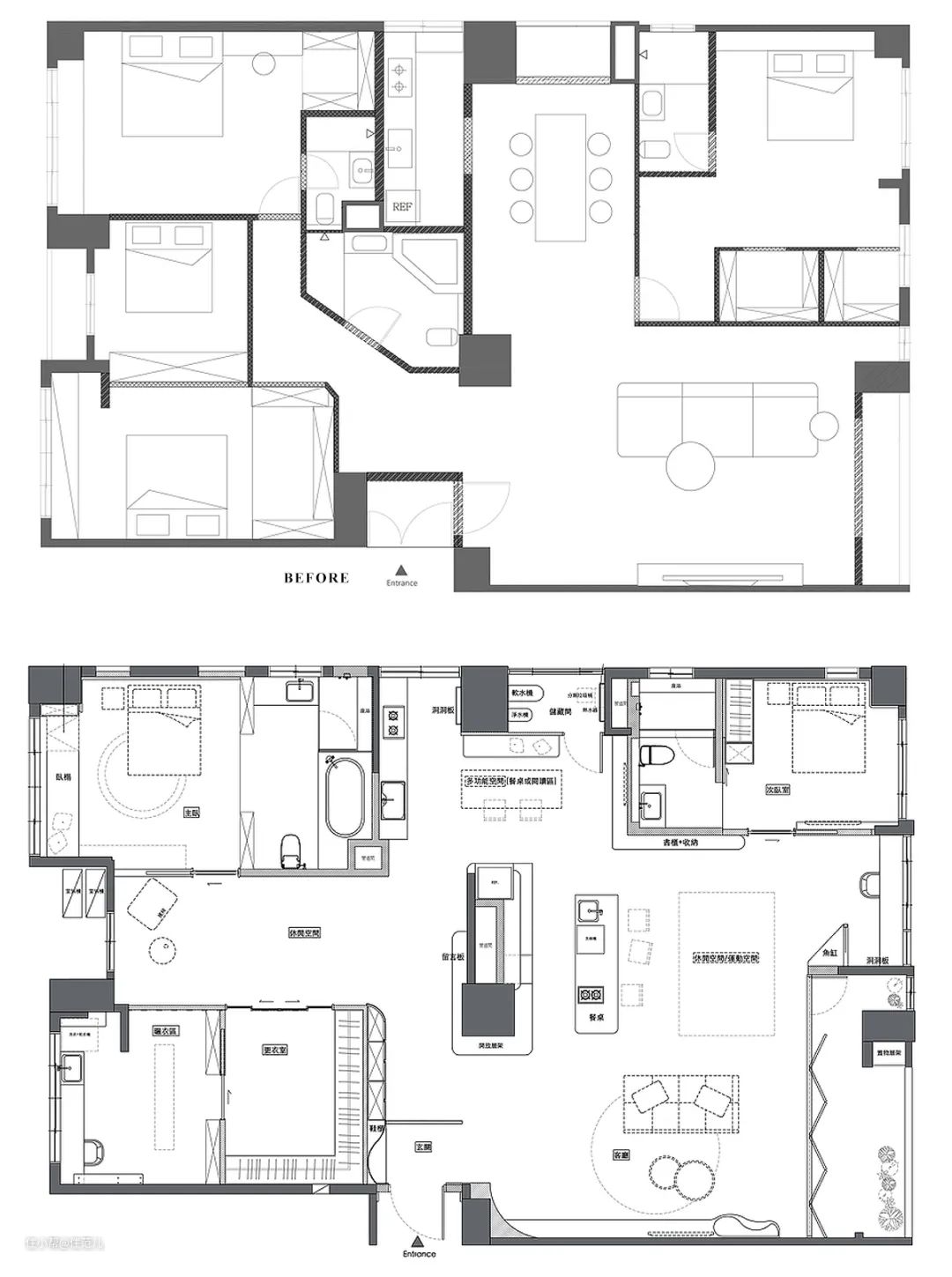 今天分享的案例,屋主是一对即将退休的夫妇,男女主人希望根据自己的需求在人生的后半段拥有自己的私人空间,与另一半形成独立而融洽的生活状态。