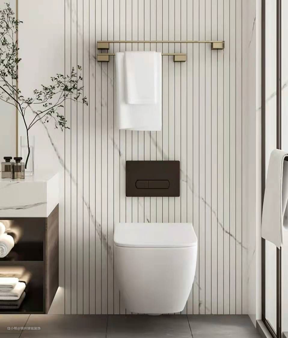 (3)增加卫浴储物功能设置壁龛或增加柜体。落地式不锈钢壁龛是在朋友家定做的。智能马桶是浴室必入宝物提升生活品质就靠它,壁挂式打扫非常方便空间也高级。