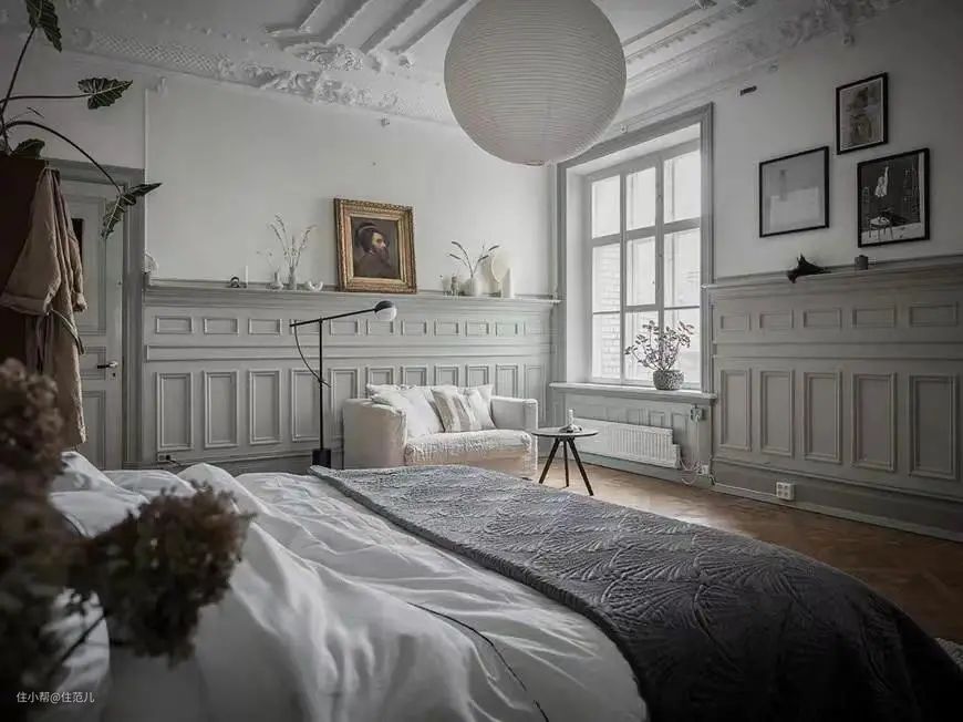 之前的文章里面说过了,喜欢古典风格的人,比较建议你参照模具较好的比例装护墙板,即便不在空间里搭配很张扬的色彩,也会显得很繁复而有层次。