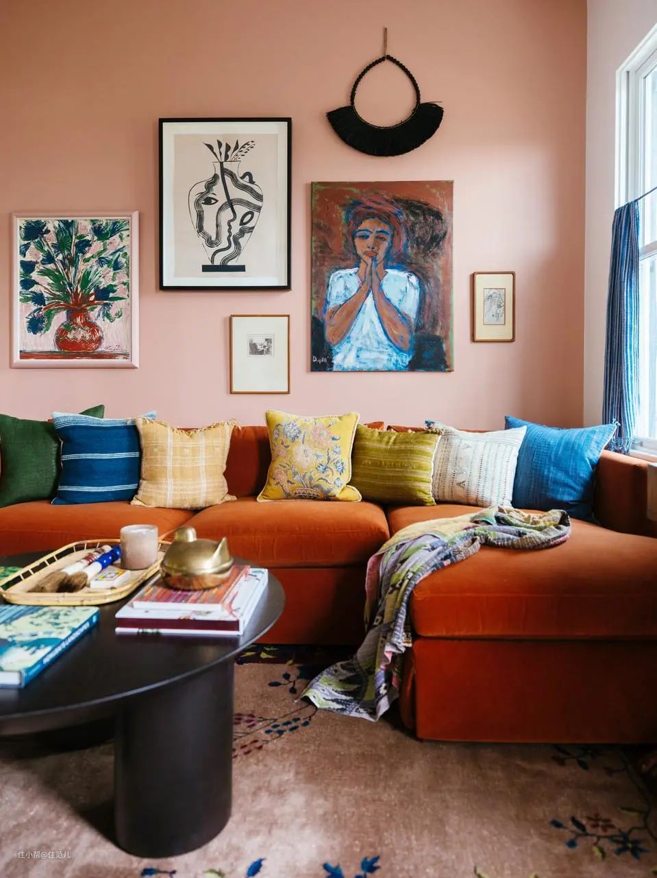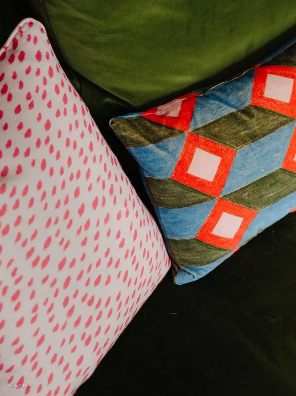 沙发靠垫和抱枕可以使用多元的图案,它们更换的成本相对低,时间久了看腻了就可以随时换新,是打造极繁的捷径。
