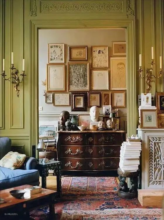 用整面墙的画框来打造极繁,让墙变得更丰富,也是很多极繁主义者都会做的。