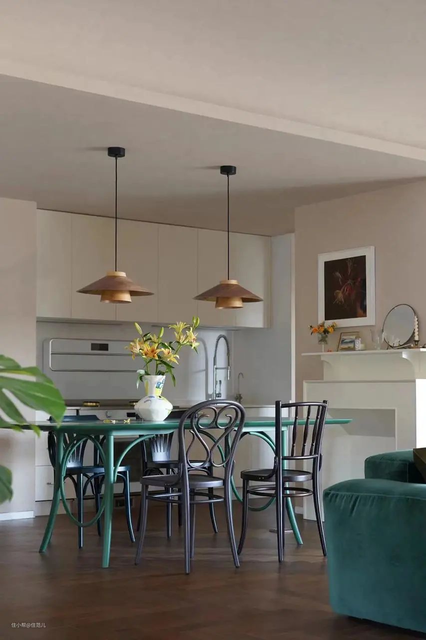 之前分享的贵州设计师案例中,就在餐厅选用了款式繁琐的曲木椅,配合丰富的绿植,完全有别于极简风的刻板和无聊。