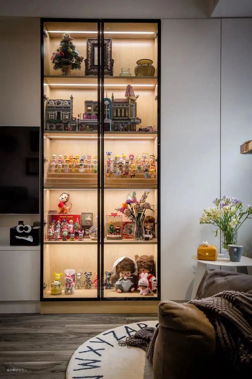 像是我们之前客户家使用玻璃柜收藏盲盒玩具、手办,可以方便“展出”的同时,又避免落灰,营造了极繁的另一种可能性。