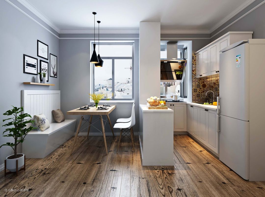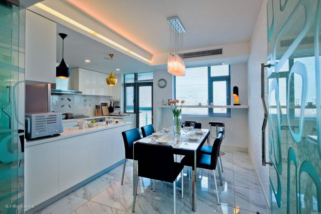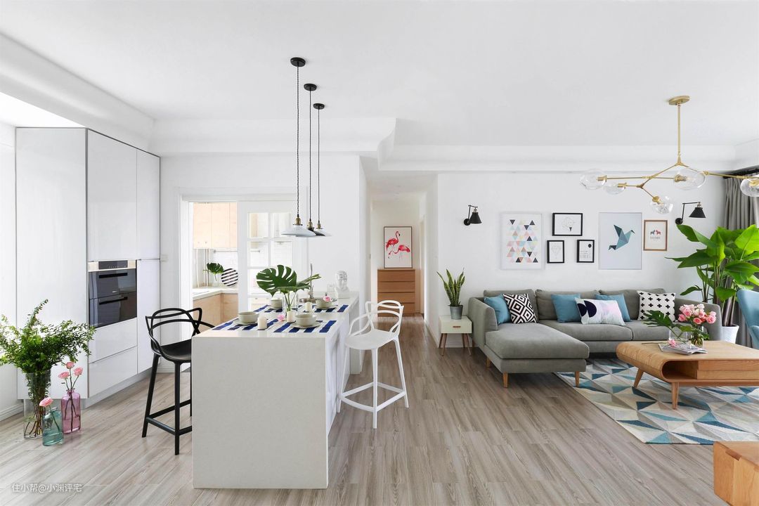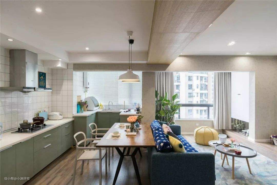 开放式厨房,一般是厨房和客厅、餐厅连在一起的。此时厨房的外观(整洁、干净),直接影响到整个房间的观感。