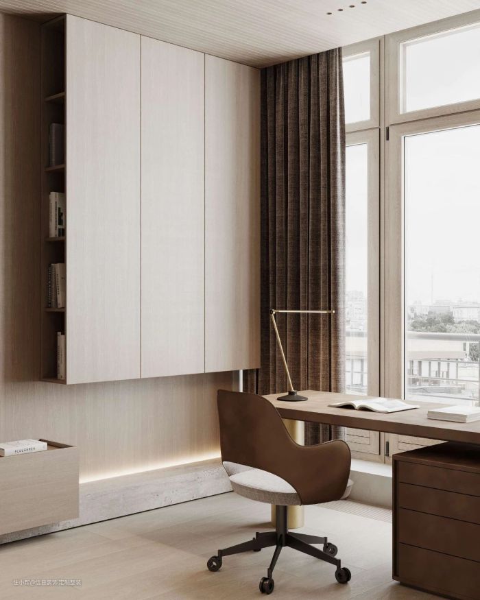 书房的设计延续了客厅的色彩和质感,没有过多的设计手法和物品堆积。通过人性化的思考,我们可以创造一个功能齐全的生活空间,享受生活的美好。