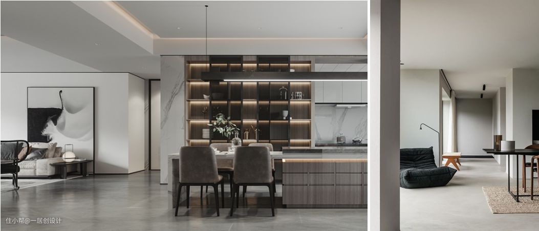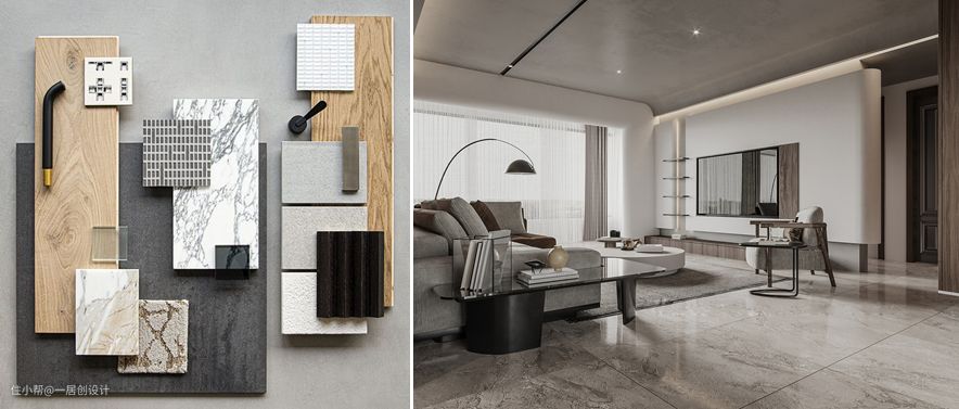 基装材料上运用石材、木质、面砖等天然材料。但也不仅仅局限于此些材料,空间中也开始广泛的运用了一些涂料来凸显整个空间的品质,简单而不简约的空间感。