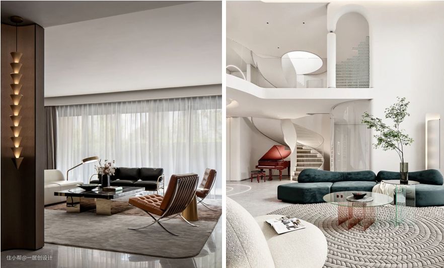 家具突出强调功能性设计,设计线条简约流畅,装饰元素少,多采用皮质突出家具品质。玻璃大理石也是现代风格比较常用的材质元素。