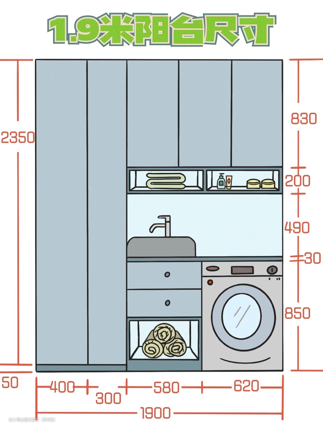 2、滚筒洗衣机一般在85cm的高度,所以洗衣台就要在90cm以上才行,要为上开盖洗衣机预留足够的空间。