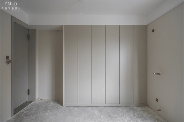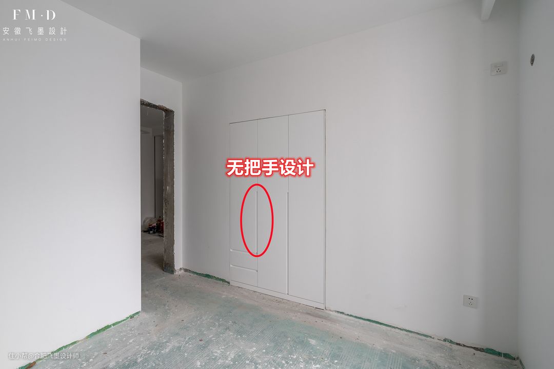 像下面这样,门朝内还往衣柜这边,就得留够距离了,不能出现“打架”的情况。保持一定间距,而且还细心地将墙角设计成了弧形,让人有种眼前一亮的感觉。