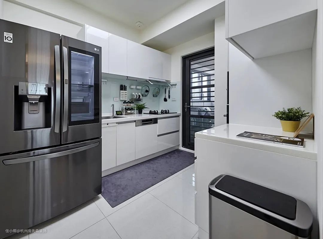 从冰箱取出食材后,往往须放进水槽进行初步的处理,这时冰箱的配置若在水槽旁边,在动作上也能流畅进行后续基本步骤;走道也应保留好合适间距,以往的传统厨房,大多设定目标为单人使用,故约70~75cm的走道空间便是能够轻松走动的距离,若以两人便于错身通过的宽度,约为90cm或是以上的间隔是为理想范围。