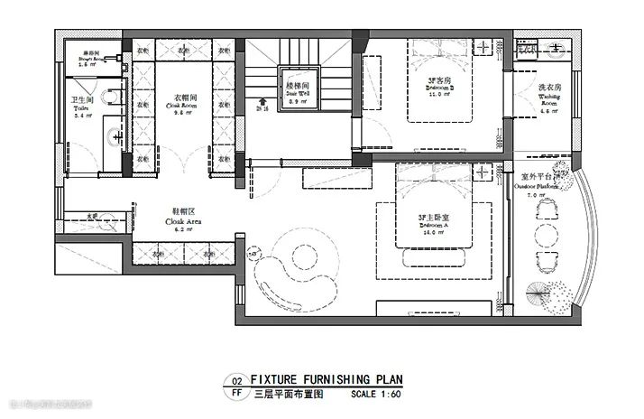 三楼:主卧室+客卧+衣帽间+洗手间