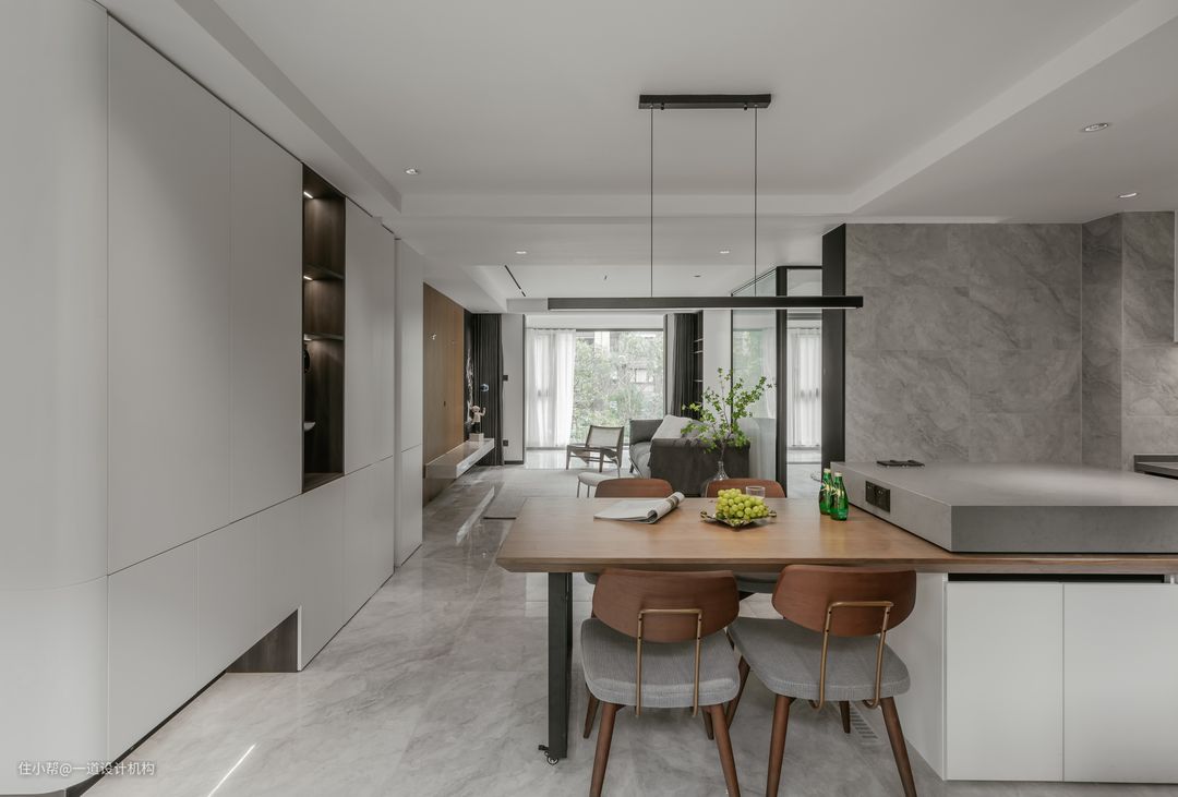 ▲餐桌和岛台的一体化布局,不仅仅是视觉的通透干净,更是生活品质的提升,家庭功能的丰富