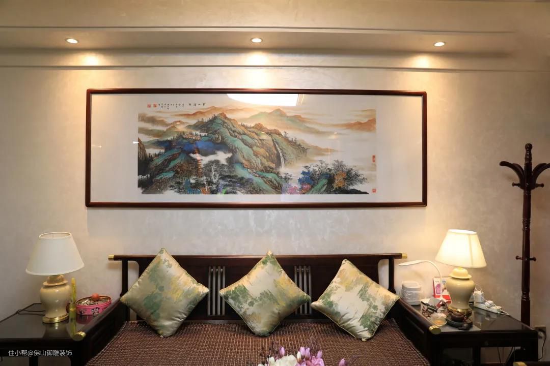 客厅作为会客场所,硬装和软装都充满了中式的调性,完美的装修配置所呈现的装修效果,可以看出户主是个传统文化的爱好者。