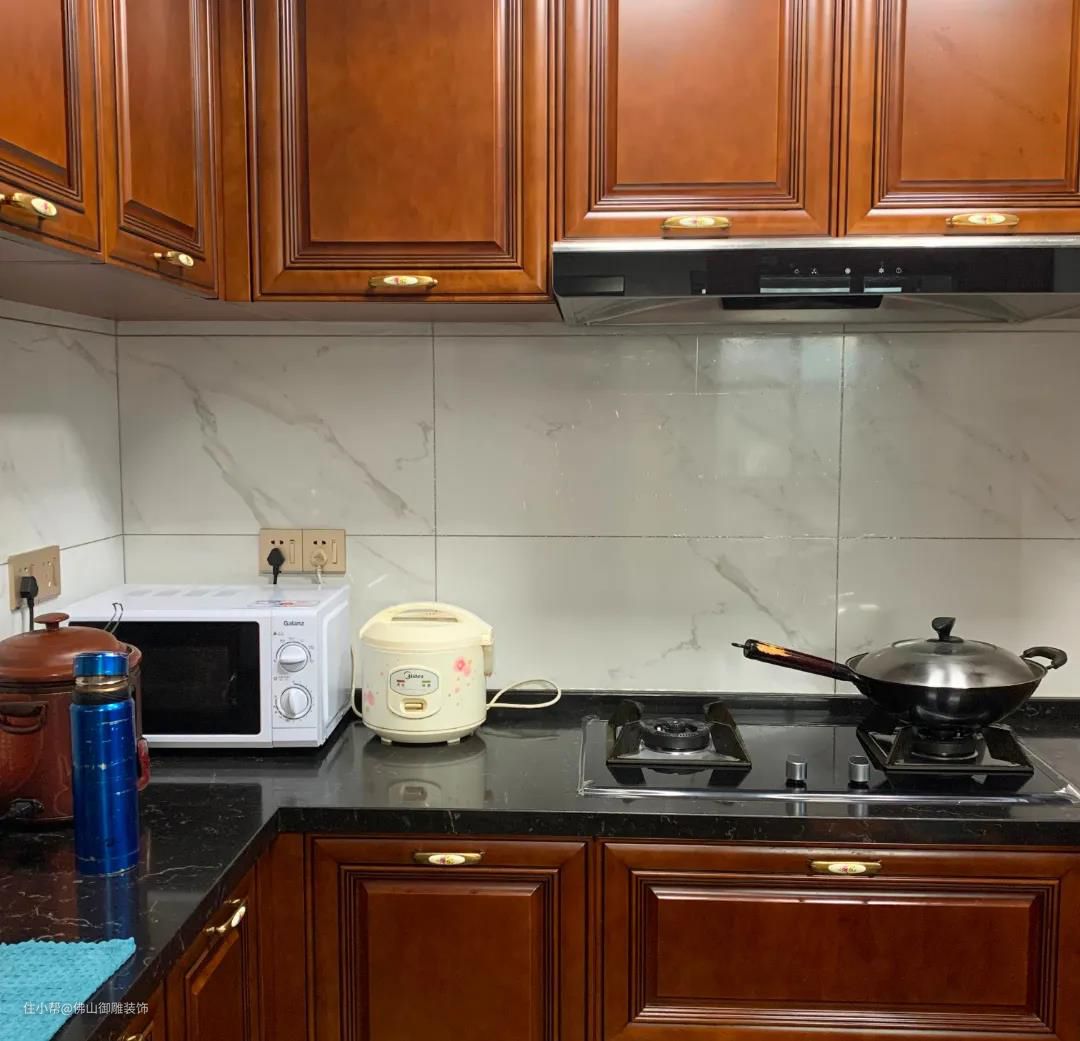 厨房根据屋主的生活习惯,直接做了中式玻璃隔断,采用U型布局,合理地利用好空间,使用也十分便捷。