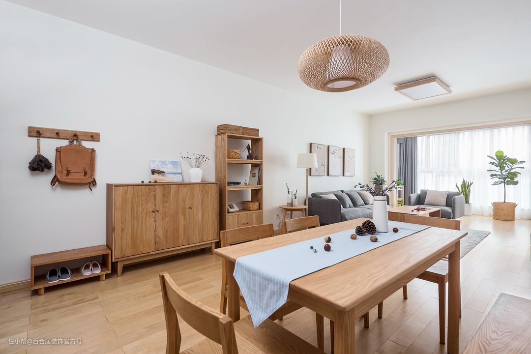 日系风加原木风,房屋装修风格偏现代主义,倾向于功能便捷、使用好住,房屋主要以纯白色与原木搭配为主,色调上主打温和,每个位置都被赋予了温暖的色彩,大量使用舒适的原木作为主要材料,像是寒冷冬日的缕缕阳光,带着严寒天气中的静谧与干净,没有一瞬间的刺激,带来的是永久的温暖与舒适。