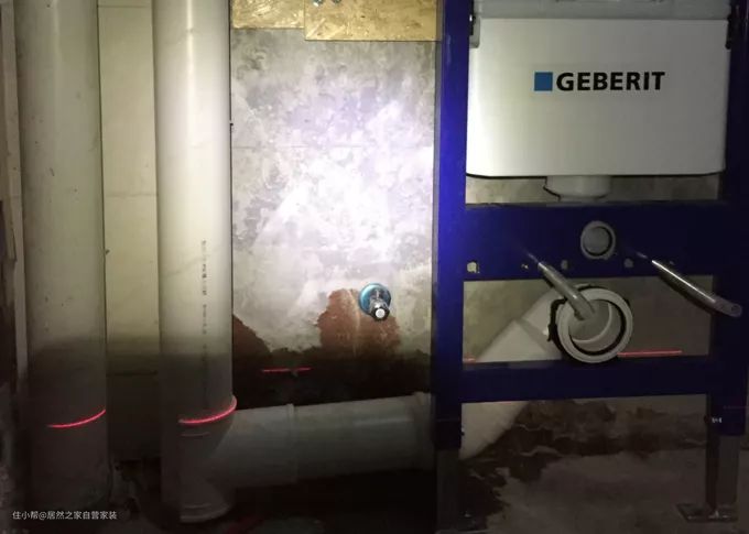 一定要注意按键左右对称问题!如果您家的壁挂马桶像上图这样,贴着一边的墙壁或者下水道包管,那么一定要注意啦,装错了后悔也来不及!由于水箱是在毛坯状态下安装(见上面左图),在这个状态下您计算出来的按键左右对称尺寸与最终完成时是不一样的,因为下水道包管贴的瓷砖会吃掉按键左边的大概2-3厘米空间,最终导致按键左右不对称(见上面右图)。所以这种安装情况下,安装水箱时,请一定要在按键左边,多留出贴砖厚度。