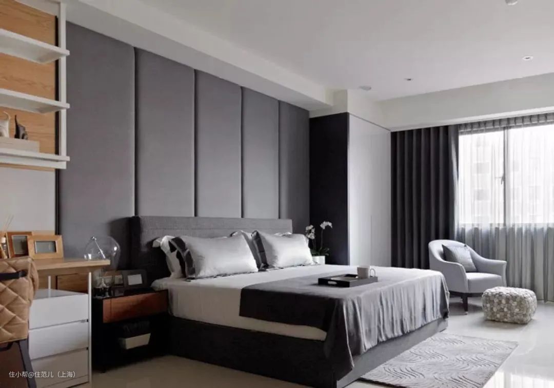 背景墙还可以做软包,也就是布料或者皮革上墙,隔音、柔软,常用在卧室床头墙。