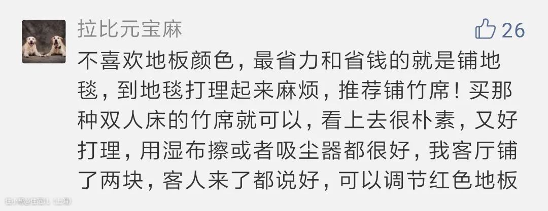 预算足够可以用好清洁的短绒地毯,预算低可以用平织地毯,编织地毯/植物纤维毯也是自然风十足的好选择,柔软透气好打理,有点像农村的草席。