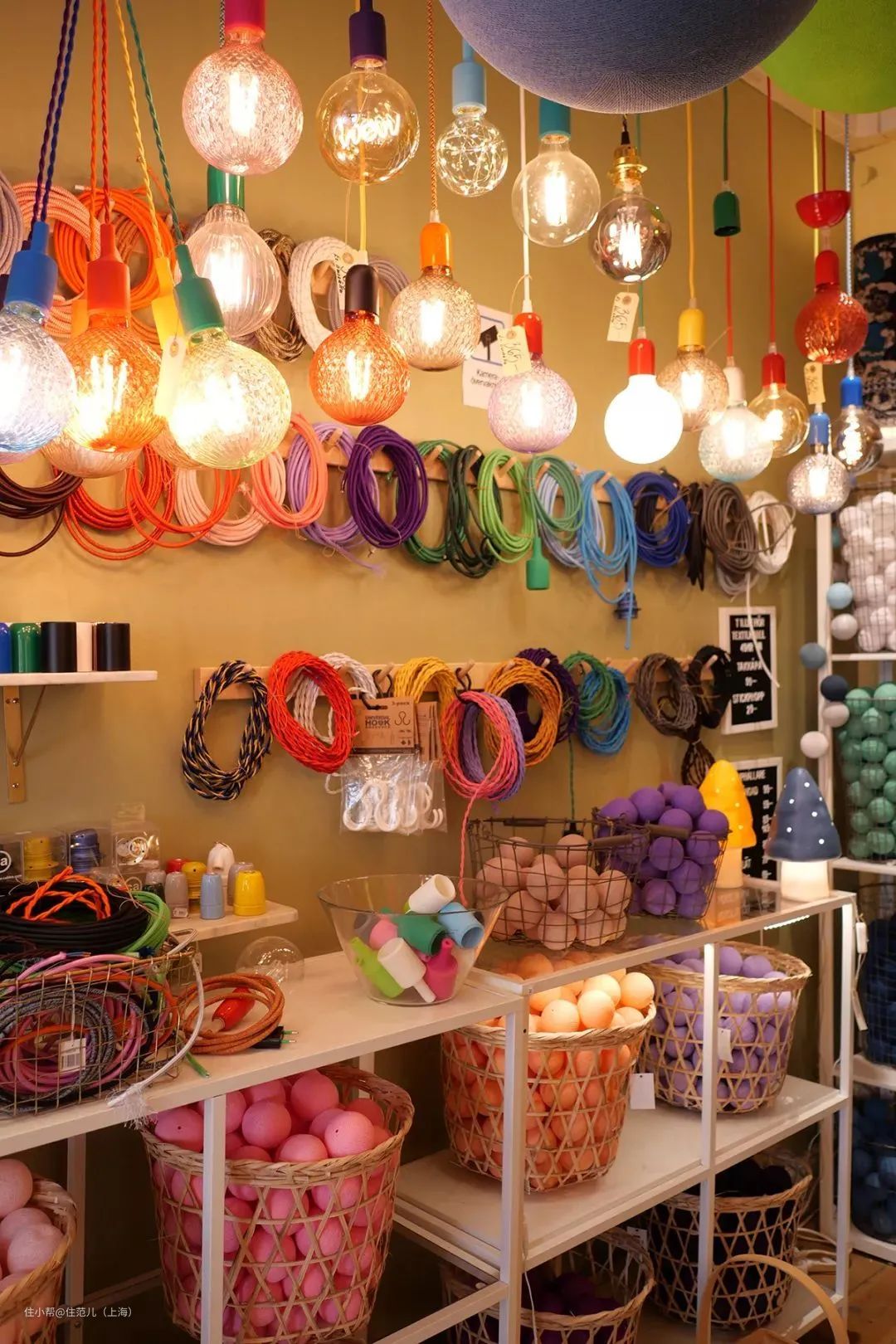 国外喜欢用这种明线做吊灯,看上去像长长的钓鱼线垂下来,所以叫做“鱼线吊灯”,还有各种颜色的电线可以选,灯和电线任意组合。