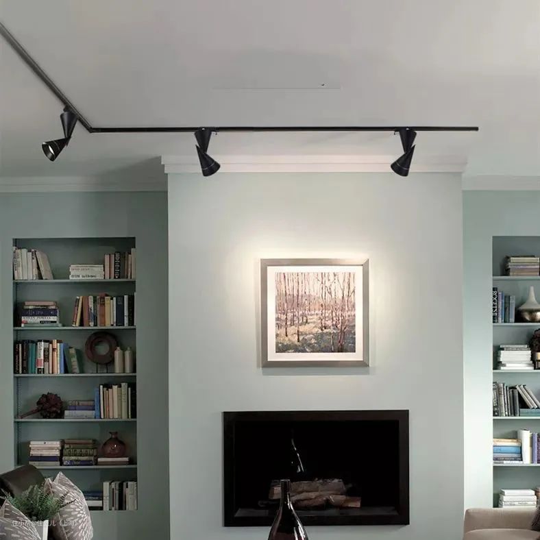如果你喜欢射灯,但不喜欢吊顶,可以选择明装的射灯,在天花板上开浅槽走电线即可。