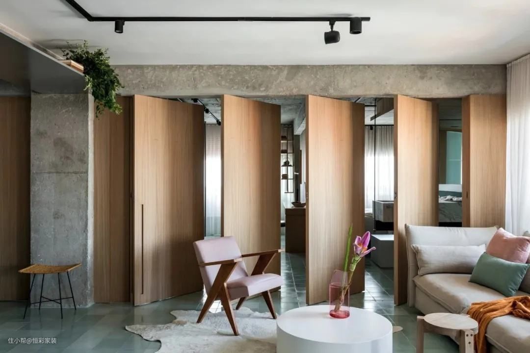 很多隐形门会巧借家具来实现空间的隔断,比如说书架、置物柜...