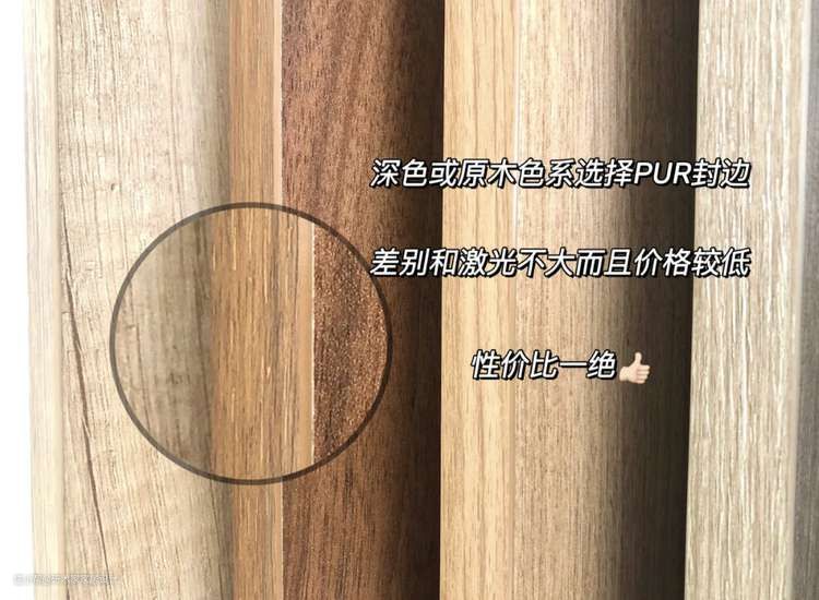 其次如果选购的型号本身非纯色浅色的,用激光的意义不大比如木色,深色的板材用pur就完全达到非常棒的效果~