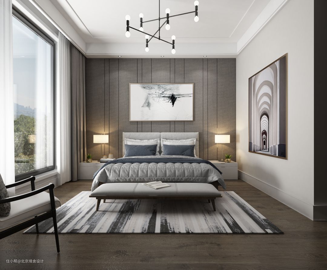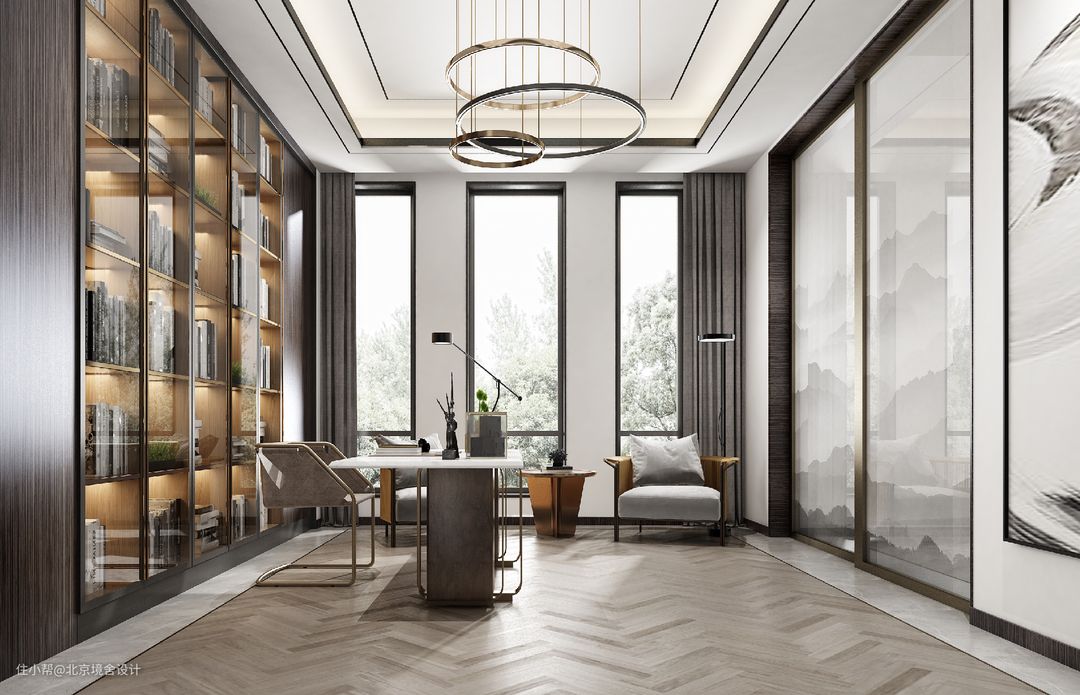 本案例中,业主年纪稍长,驰骋商海数年,阅历丰富,不喜繁复的造型和不必要的装饰,要求居家环境简洁舒适、环保健康。北京专业别墅设计师顾吉舒在与业主沟通过后,提出现代简约的别墅设计风格,融入一些中式元素与之碰撞,展现的是业主内心世界大道至简的洒脱精神。